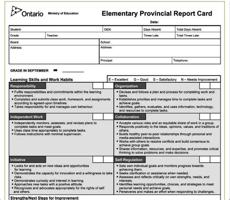 Reading Online Sample Learning Skills Comments Ontario Report Card Doc